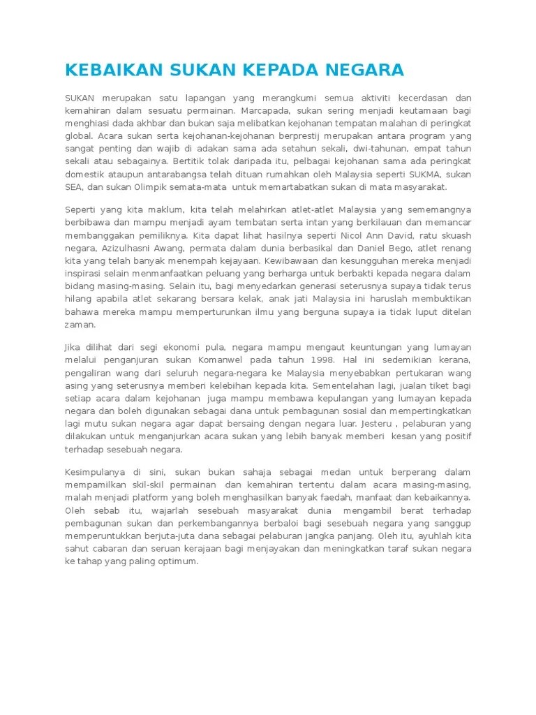 2882021 karangan kepentingan sukan kepada negara. Contoh karangan yang boleh menjadi panduan pelajar untuk menghasilkan karangan cemerlang. Hal ini dikatakan demikian kerana individu yang ingin . Aktiviti bersukan dapat menunaikan pelbagai hasrat bukan sekadar pertarungan .